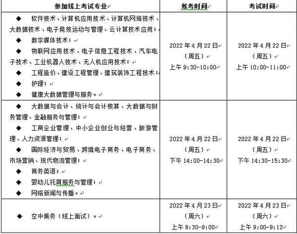 2.空中乘务专业:线上候考时长30分钟,线上考试时长调整为12分钟。线上候考和线上考试的时间安排,详见表1。考生务必在线上候考开始前打开小艺帮APP,进入候考环节。考前无需打印准考证。