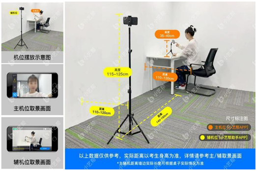 5.考生务必在候考开始前进入小艺帮APP,按要求设置双机位摆放。模拟考试有严格的考试时间限制,请在规定的时间内完成模拟考试,不得提前退出模拟考试。模拟考试视频可提交,但不作为评分依据。
