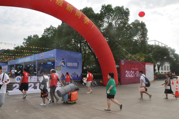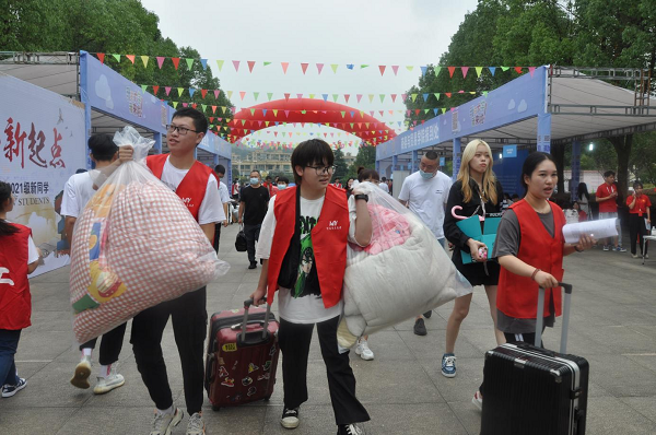 协同配合,高效服务。为营造出良好的迎新氛围,确保迎新工作顺利完成,学校组织了一批有理想、有热血、有担当的青年志愿者作为迎新主力军,助力迎新工作。迎新现场,伴着扩音喇叭的声声提醒,新生们在学校志愿者的引导下,依次排队,查验“健康码”“行程卡”、48小时核酸检测证明,有序通过测温通道进入校园。校园整洁、卫生,迎新红色拱门美观夺目,道路两旁彩旗迎风飘扬,写着迎新寄语的横幅、喷绘等随处可见,综合服务处、绿色通道处、缴费处、各院报到处醒目、便捷。各学院负责人在新生报到处参与迎新工作,保证迎新工作的有序开展,工作人员周到服务,学生志愿者们身着统一的服装,热情引导,手拿肩扛为新生搬运行李、引导新生报到注册、购买生活用品、安排住宿、参观校园、熟悉新环境等。学校还为申请资助的贫困学生专设新生入学“绿色通道”,帮助他们顺利完成报到手续。出于疫情防控需要,报到期间,学校强化了校园治安管理,重点加强交通疏导、安全巡查、报到处秩序维护等工作,确保迎新工作平稳、有序。