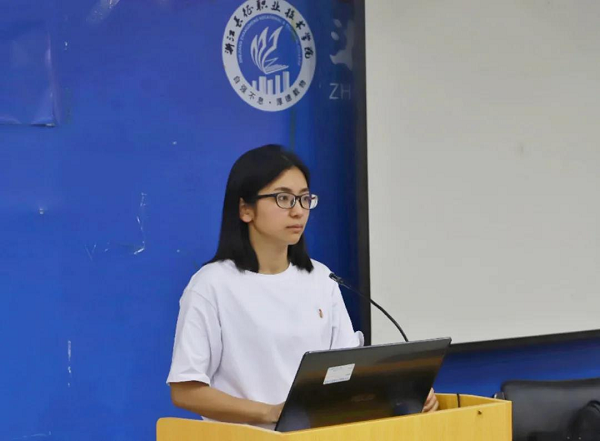 第二课的内容为:不忘跟党初心·重温入团誓词,由洪紫梦同学主持。洪紫梦带领学生干部面向团旗,重温入团誓词。之后,各系团干部代表分享了自己的入团心得,并汇报了团支部建设经验。