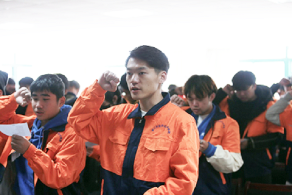 最后,2019级工业机器人技术班的储涛同学作为学生代表发言,并带领全体学生庄严宣誓,承诺未来将发扬“长征人”和“企业人”的精神,努力学习、认真工作,以优异的成绩来回报学校和企业的培育。