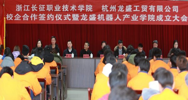 1月12日,学校与杭州龙盛工贸有限公司的校企合作签约仪式暨龙盛机器人产业学院成立大会在学校第三会议室召开。学校副院长杜宝山、副院长高创宽、董事长助理陈澍、杭州龙盛工贸有限公司副董事长兼总经理钱浩亮、杭州龙砺智能科技有限公司副总经理李旭红和师生代表等等出席了会议。