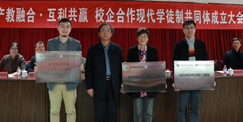 会上,校企共同签订了现代学徒制培养协议,学校分别授予了三家企业“校企协同培养应用性人才基地”牌。杭叉集团股份有限公司授予了智能技术系电子信息工程技术专业“现代学徒制杭叉智能制造班”牌,杭州迅蚁网络科技有限公司授予了智能技术系无人机应用技术专业“现代学徒制迅蚁科技班”牌,浙江国自机器人技术股份有限公司授予了智能技术系工业机器人技术“现代学徒制国自机器人班”牌,同时,学校和杭州迅蚁网络科技有限公司合作成立了“空中智慧物流无人机创新协同中心”。