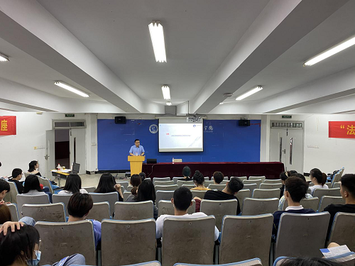 气氛同样热烈的还有在阶梯教室举行的“新时代法制进校园”法律讲座,共有两个主题,分别是省律协带来的“校园贷——危险套路”和团省委带来的“《民法典》的新规定与新精神”。“校园贷”讲座精准对接当下大学生的现状和需求,议案讲法,通过实际案例讲解了“校园贷”的概念、表现形式、实施步骤、危害和举报方式,增强同学们对于涉黑涉恶行为的识别能力,告诫同学们树立正确的消费观,不盲目借贷,强化风险防范和自我保护意识,引导同学们用法律的武器保护自己的权益,做一个知法、遵法、守法、且会用法的大学生。针对目前全民关注的《民法典》,华东政法大学经济法博士后、省团委志工权益部副部长卢志刚对《民法典》的基本构成等进行了深入浅出地讲解。