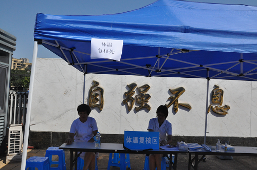 (校医务室为学生体温复核)