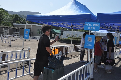首批返校学生安全抵达校园后,将按照新学期工作流程办理报到注册手续,开始校园学习生活。2019级财务管理3+2班的一位同学说:“尽管天气炎热,行路辛苦,但看到各位老师和同学的笑容,看到他们顶着烈日、坚守岗位,为返校复学做着努力,看到熟悉的校园,我便感到很安心,有一种到家了的感觉。”