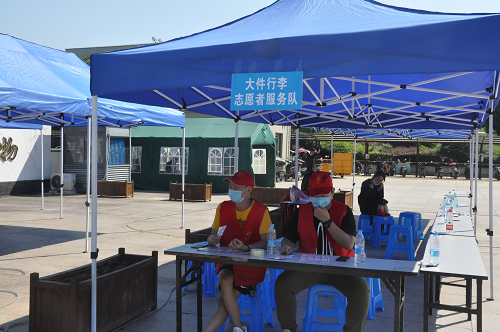 (学生志愿者帮忙运送大件行李)
