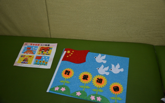 之后活动由志愿者们分两组带领小朋友进行了童绘《我和我的祖国》美术作品、快乐手工《我和我的祖国》diy贴画。在欢乐的游戏过程中,引导小朋友一起用手中的画笔描绘对祖国的感知、赞美和祝福。