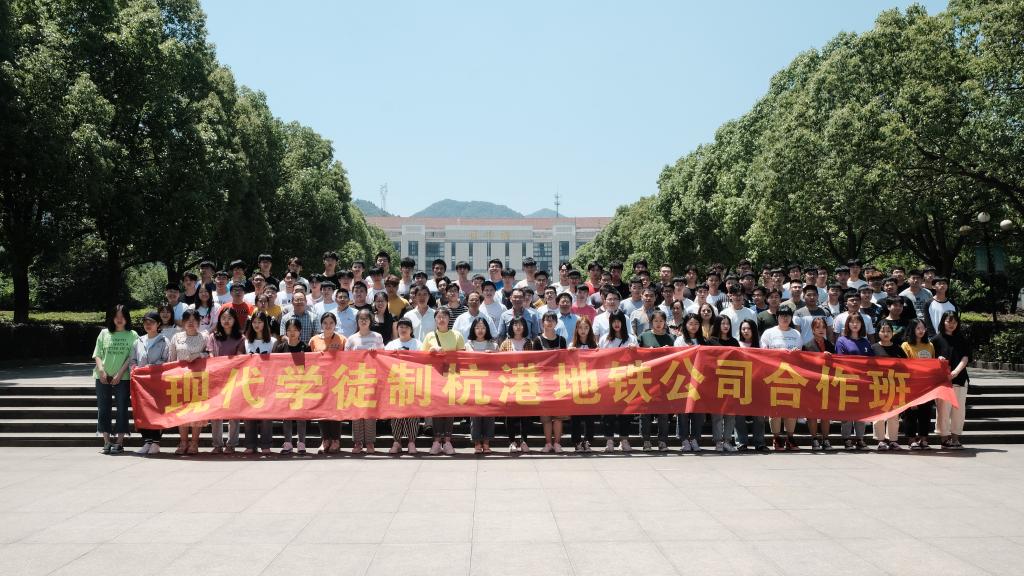 随后,王其军书记和杨春芳书记代表双方签订了“校企合作人才培养协议”,并与我校学生签订定向培养三方协议书;而后共同为“现代学徒制杭港地铁班”、“校企协同培养应用性人才基地”揭牌,开启我校与杭州杭港地铁有限公司合作的新篇章,为经济社会发展贡献我们的力量。