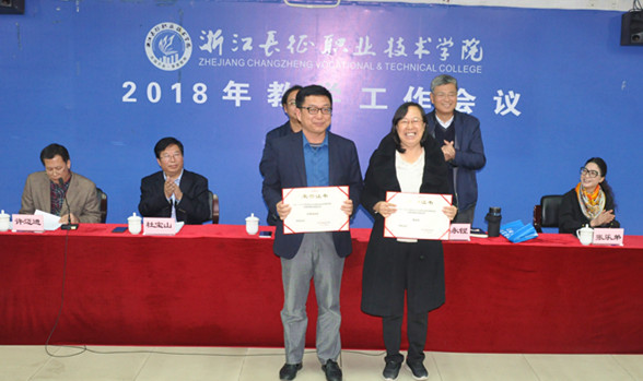 正院级巡视员洪永铿宣读了各项表彰的获奖名单,学校对校级教学成果、校级第四届课堂教学创新竞赛、校级微课教学竞赛、“两进”活动先进系部和先进个人、“四无”课堂活动先进系和先进班级、“我心目中的好老师”、“我心目中的好辅导员”、“长征好员工”、校企合作先进集体和先进个人、科研工作先进集体和先进个人的相关获奖单位和老师进行了表彰并颁发了荣誉证书。