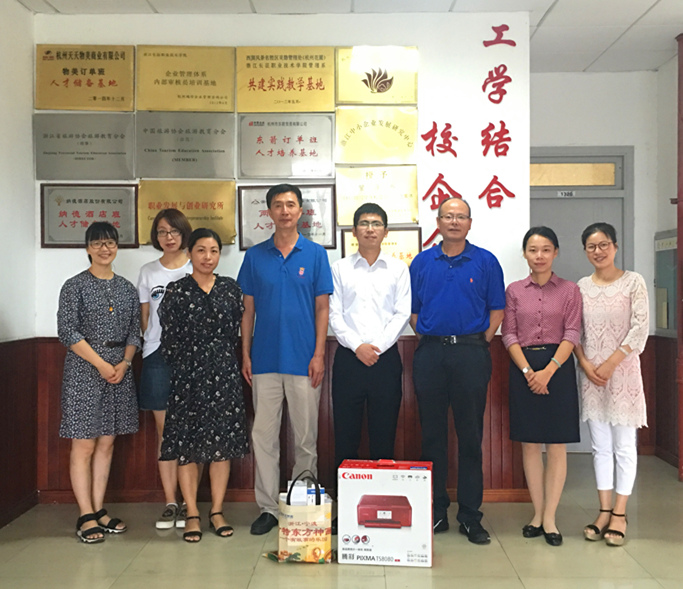 2018年9月21日上午,宁波方特东方神画乐园有限公司领导专程到杭州对我校管理系旅游管理专业进行教学仪器设备捐赠。