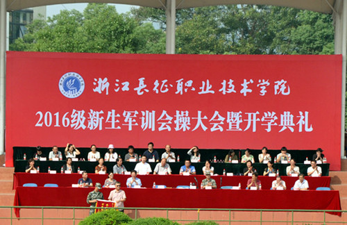 军训会操结束后为开学典礼。首先由执行院长洪永铿为新生致词,并对新生提出了三点希望和要求:一要尽快适应大学生活。二要进一步思考自己的未来。三要学会做人,学会学习,学会求知。并祝愿2016级新同学都能走好大学这人生关键的一步,每个人都有一个辉煌灿烂的明天。