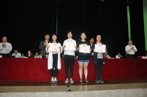 挥别青春的候场骊歌犹绕耳际,雄壮的国歌拉开每一个庄严时刻的帷幕。副院长杜宝山教授宣读了国家奖学金获得者、省级、院级优秀毕业生表彰决定,学院领导为获奖学生代表及毕业生代表颁发了荣誉证书和毕业证书。
