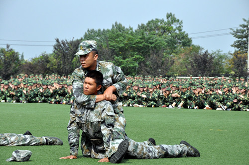 承担本次军训任务的是驻杭某部队的官兵,训练科目主要包括队列训练、紧急集合与疏散、徒步行军等内容。军训团按6个营62个连编制,学生人数达3800余名。经过为期5天的军事训练,同学们个个英姿勃发。下午13时30分,同学们进行了分列式汇演,充分展示了我院青年学子朝气蓬勃、昂扬向上的精神风貌。教官方队的军旅拳表演将整个大会推向高潮,严格的军事纪律,良好的精神风貌,过硬的军事素质赢得了在场师生的热烈掌声。