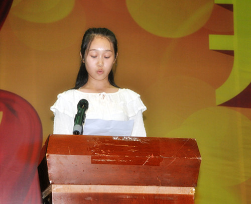 随后,财管系林瑶瑶同学代表2014级新生发言,表示作为新生将牢记“自强不息、厚德载物”的校训,在有限的三年大学时光里,不断提高自己、完善自己、超越自己,用心对待每一天的学习,乐观对待每一天的生活,真诚对待身边每一个人,以自身的成长报答父母、师长的关爱。