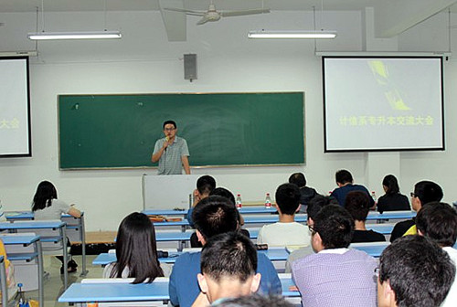 为了增加在校生参加专升本考试的信心,在我系党总支副书记陆栋煜老师的组织下,于2013年5月30日下午17:00在实训楼北203召开了“计信系专升本交流大会”。参会人员有计信系党总支副书记陆栋煜老师、团总支书记徐静老师、各班班主任、2010级已经顺利通过专升本考试并被台州学院、浙江科技学院的学生代表石康康、徐吉鸸以及我系50余名未来意愿报考专升本的学生代表。