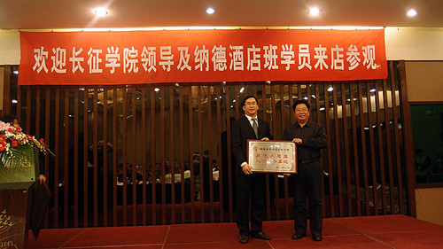纳德酒店股份有限公司总经理黄兴与学院领导杜宝山院长互授牌匾