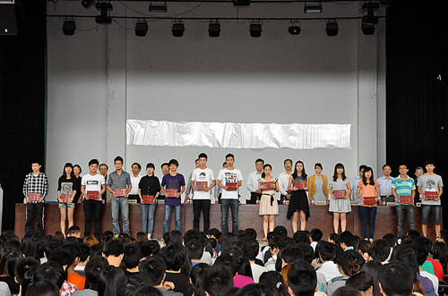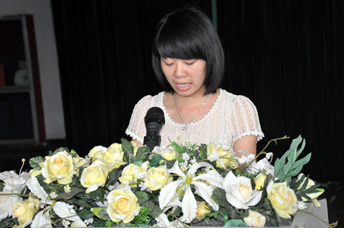 而后应用语言系王珍老师作为教师代表向2012届毕业生表达了祝贺,并寄予大家期望,希望大家能够在以后的生活工作前程似锦。学生代表会计系江霞同学表达了自己对老师同学的感激之情,她相信辉煌的未来将从大家的今天开始,将一句“奋起吧,伟大的开始在等着你”作为毕业的贺礼送给相伴三年的同学。