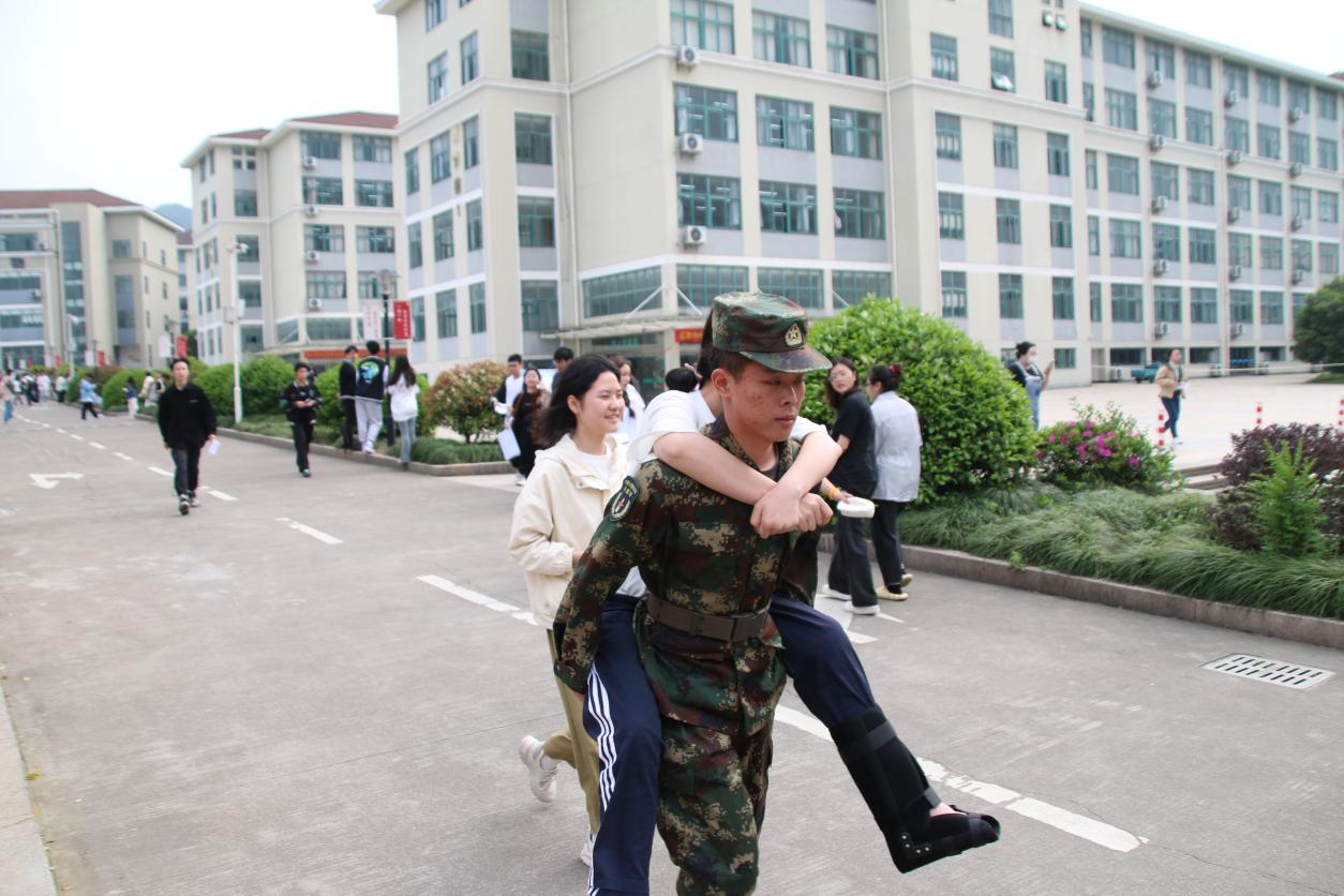 为了给广大考生提供严肃、和谐、有序的考试环境,学校团委组织了近800名学生志愿者,在校门口、图书馆广场存包处、考场教学楼入口处为考生提供考点咨询、物品存放、候考指引、试场引导等一系列志愿服务工作。面对身体行动不便的同学,学校军训教官队的成员们主动背起同学,确保同学安全进出考场,顺利完成考试。