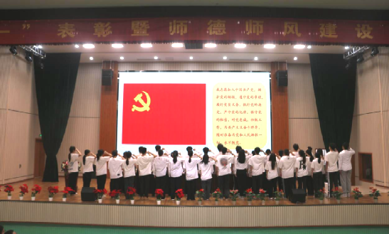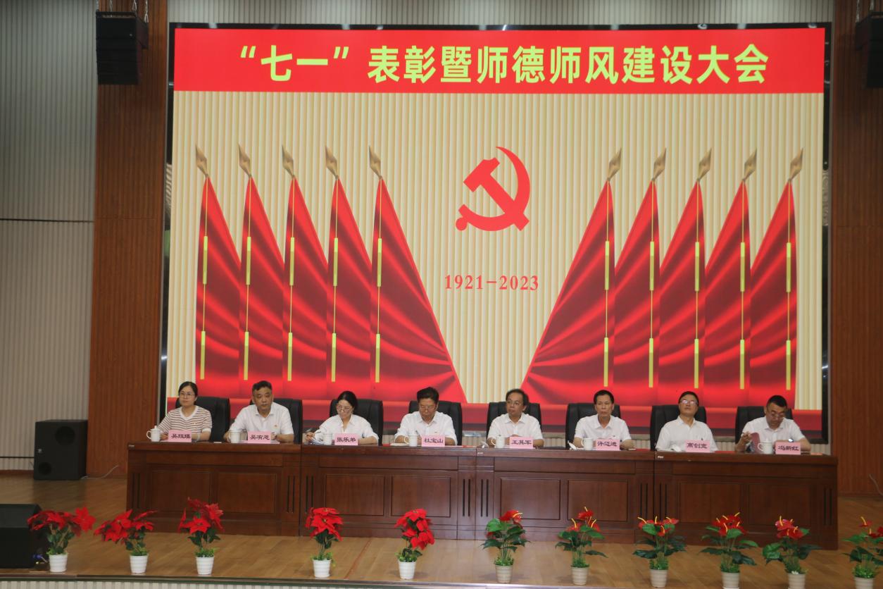 6月21日下午,我校在综合楼第一报告厅隆重举行了“七·一”表彰暨师德师风建设大会。校党委书记、常务副院长王其军,副院长杜宝山,副院长许迈进,党委副书记、纪委书记张乐弟,副院长高创宽,党委副书记吴有恩,副院长冯新红,党委委员、组织部长吴珏瑛等领导出席会议,全体教职员工参加会议,会议由吴有恩主持。