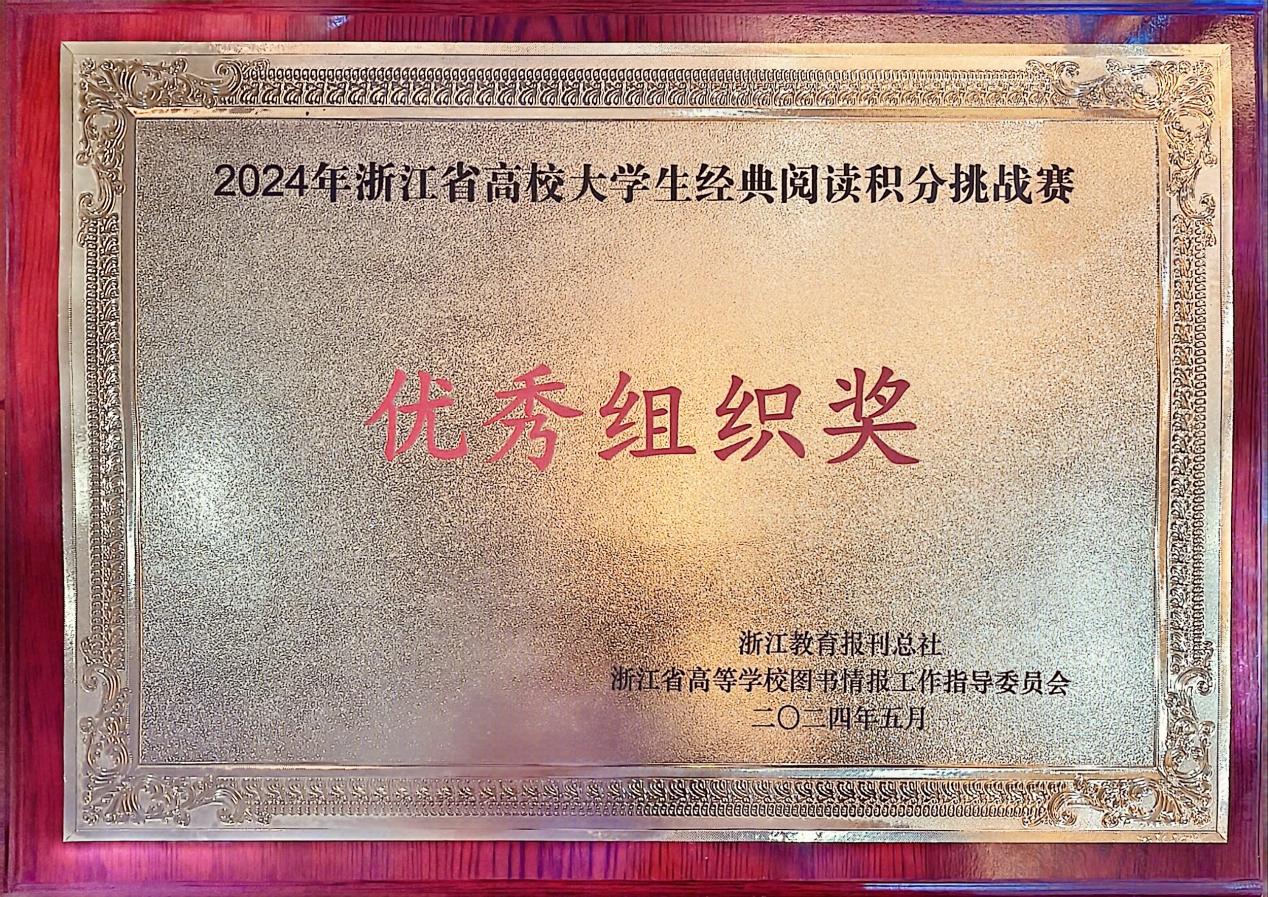 5月24日, 2024年浙江省大学生经典阅读积分挑战赛圆满落下帷幕,我校智能技术学院的卢孔喜、任凯旋同学荣获优秀阅读报告奖,石瑜锋获评优秀指导教师;校图书馆荣获优秀组织奖。