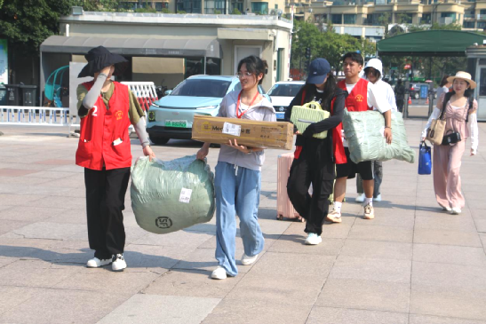 老师带队学生志愿者奔赴火车站、汽车站等6个校外迎新接站点