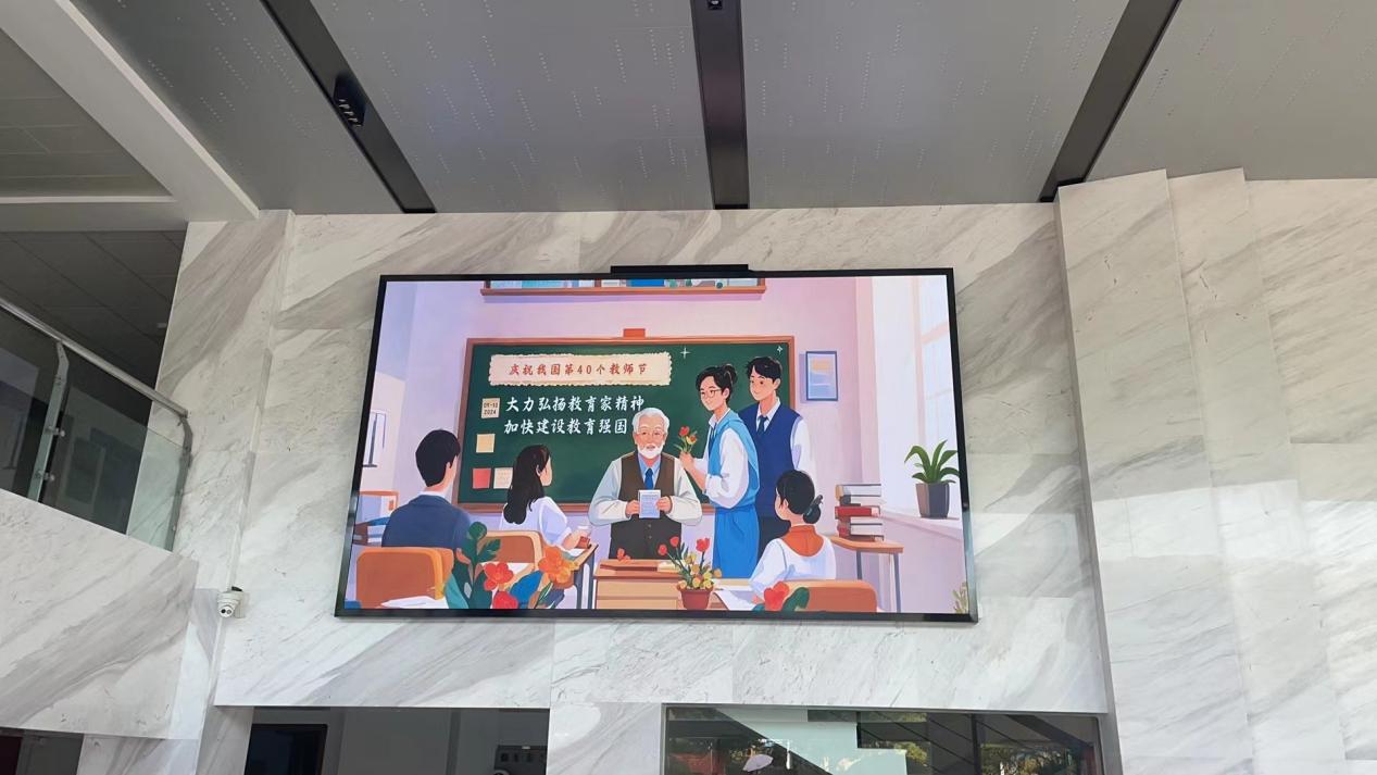 在教师节来临之际,学校还通过电子显示屏,以字幕滚动、图片展示等方式举行了“为教师亮灯”活动。