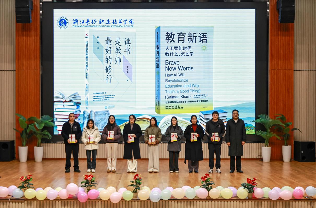 会上,全体与会师生齐声诵读《弟子规》(节选),共同感受传统文化的魅力与力量。图书馆任建东为获评2024年度“阅读之星”的师生颁奖。吴有恩为二级学院赠送了精心挑选的两本图书《读书是教师最好的修行》及《教育新语——人工智能时代教什么,怎么学》,借此进一步推动校园阅读文化的深入发展。