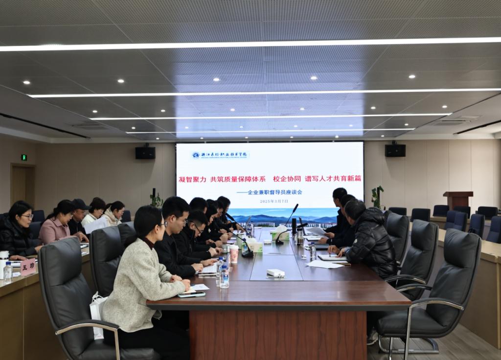 与会人员围绕“人工智能时代职业教育教学督导新挑战”“产教融合校企合作深化教学质量保障体系建设新路径”“学生职业素养培养质量评估新策略”等议题展开了深入研讨。浙江省高校文化产业合作联盟执行秘书长张良剑、杭州美创科技股份有限公司产业教育中心执行院长施嘉伟、杭州菲尔德经济信息咨询有限公司总经理沈燕芬、杭州鸿信企业管理咨询有限公司经理王丽芳、浙江省地矿建设有限公司高级工程师副经理姚鑫林、杭州迅喵数字科技有限公司总经理毛中权、云谷教育集团总经理郑潇、杭州市西溪医院主管护师吴林燕等分别结合各自的工作领域,就如何做好兼职教学督导,加强教学质量保障体系建设,助力学校人才培养提出了建设性的意见和建议。
