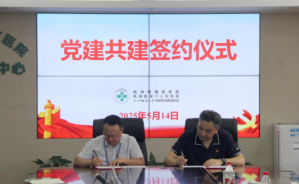 为全面贯彻落实党的二十大、二十届三中全会精神,持续放大党建共建系统联动破难优势,形成“资源共享、优势互补、互学互鉴、合作共赢”的党建工作格局。5月14日,我校与杭州市西溪医院党建共建签约活动在杭州市西溪医院行政楼510会议室举行,杭州市西溪医院党委书记邓旻、副院长沈强,学校党委副书记吴有恩、副校长冯新红及相关职能部门负责人出席活动。