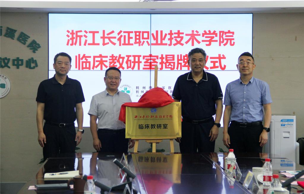 随后,在与会人员的共同见证下,双方签订党建共建协议,并共同为学校临床教研室揭牌。
