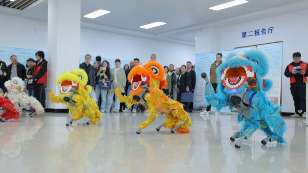 上午会议结束后,参会人员体验了由校企共研的智能对弈机器人、庞伯特乒乓球发球机器人等设备,近距离感受了工业机器人磨抛实训设备、无人机表演,一同观看了由智能技术学院科创中心工业机器人团队带来的机器狗舞狮演出。参会人员还一同前往学校图书馆、实训室、学生宿舍等场所进行参观考察。