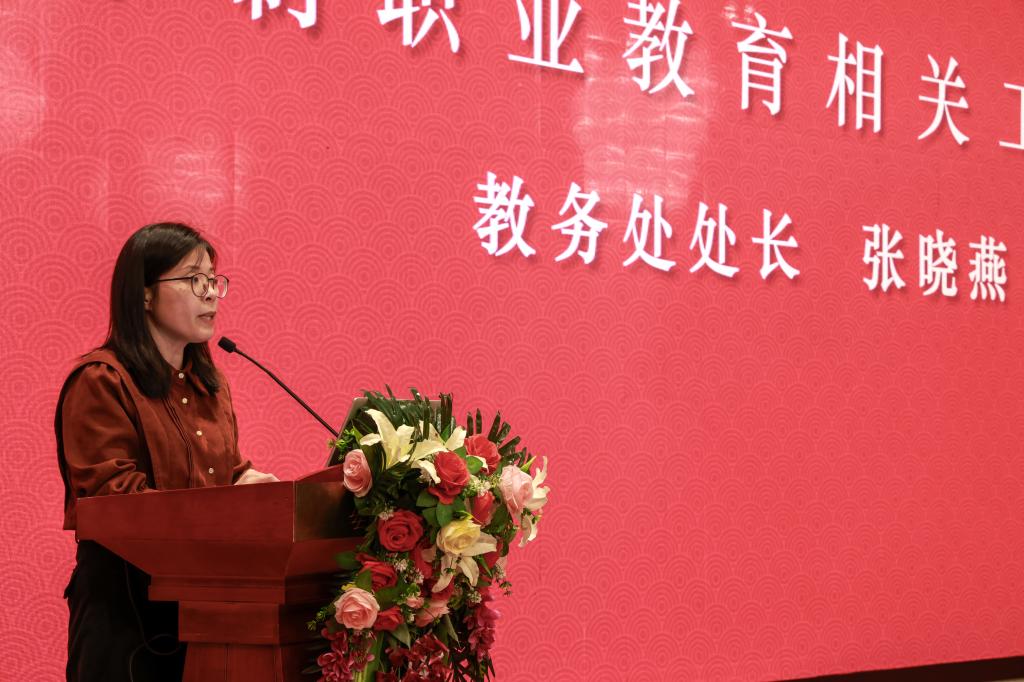 教务处处长张晓燕做五年制职业教育相关工作部署。她表示,五年制下一阶段工作将围绕以下几方面展开:一是规范选拔、严把升学准入关口;二是精准施教,筑牢教学衔接根基;三是系统培训,强化实践技能提升;四是深度融合,构建一体发展生态。