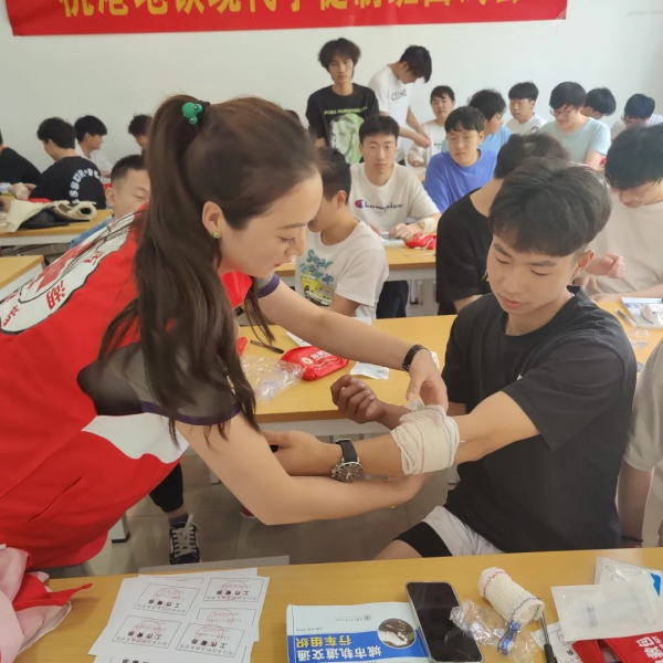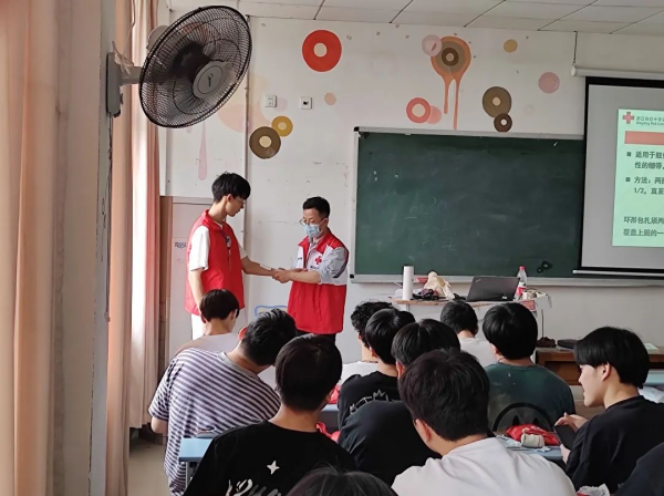 本次培训采取理论知识讲授与现场演示、救护技能实际操作相结合的方式进行。西湖区红十字会的老师们为大家生动讲解了基本的救护知识,包括判断意识、人工呼吸、胸外按压、紧急包扎等内容,同学们认真学习并积极上台参与实操训练。