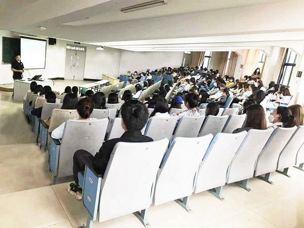 宣讲会上,曹李发首先就托育行业的发展背景,公司的创立、发展现状及未来的发展规划进行了分析,对育见星球员工的成长通道和福利待遇进行了介绍,并结合自身经历与学生们分享了人生经历及工作经验。