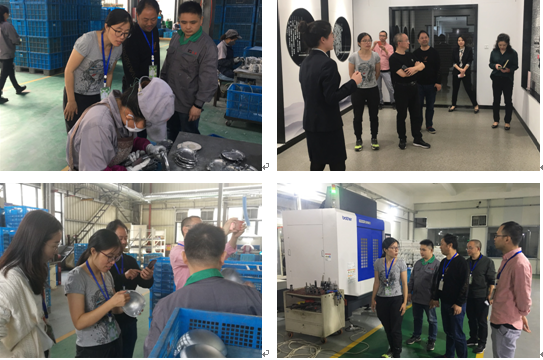 随后,我系教师一行又驱车前往张小泉股份有限公司,在集团公司领导崔总的接待与引导下,参观了生产车间、监控中心和公司展厅。厂房内,一台智能削磨机器人正在加工刀具。在传统刀剪产业引入工业机器人后,通过实施 “机器换人”,推动了传统产业转型升级,目前,张小泉股份有限公司已发展成为一家集研发、生产、销售、服务于一体的现代生活五金用品企业。