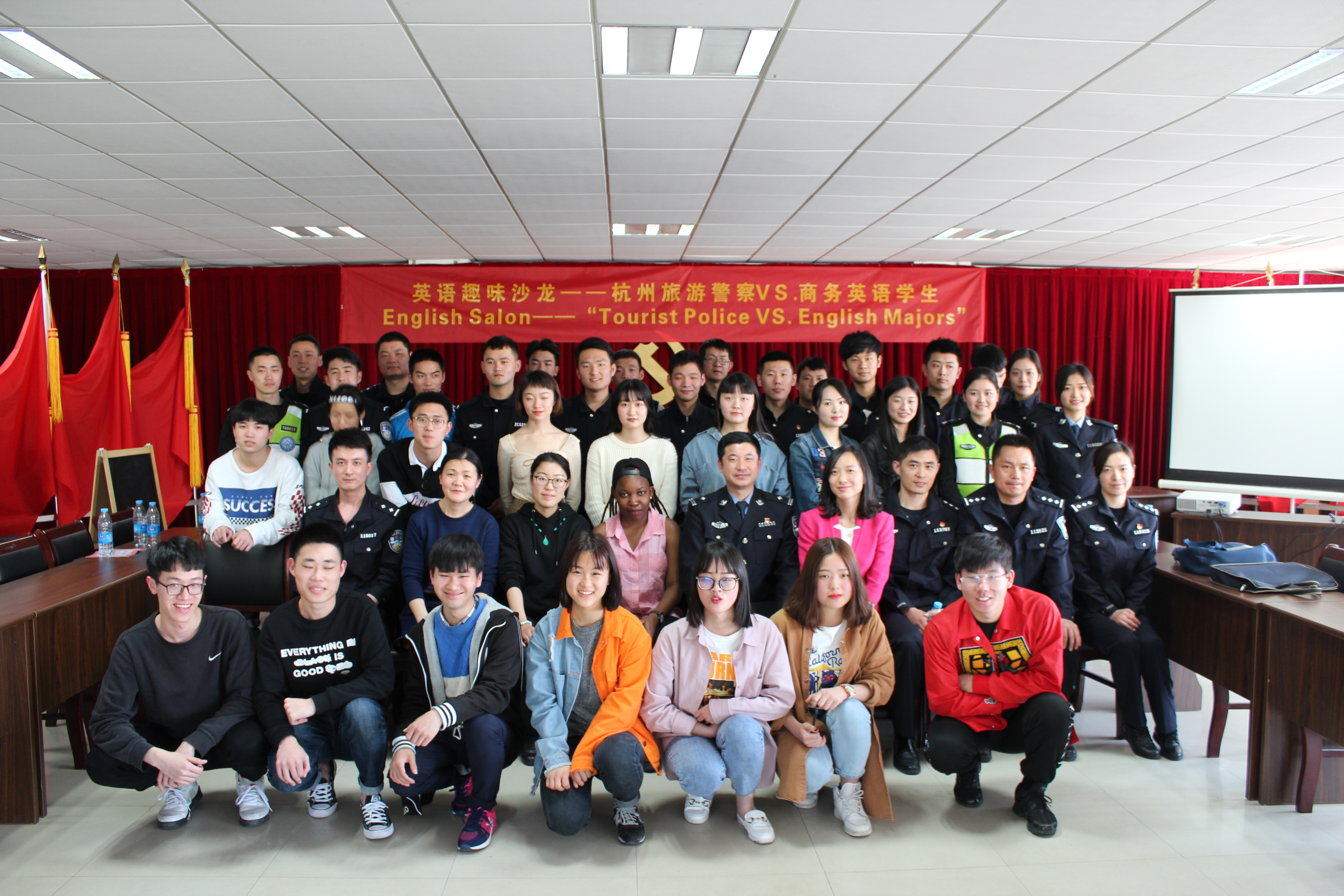 3月28日下午,应用语言系在行政楼“党员之家”成功举办了一场英语趣味沙龙。该活动是商务英语专业的社会服务项目“警务英语教学实践”的一部分,旨在通过轻松、快乐的英语交流活动来提高旅游警察与商务英语专业学生的英语口语表达能力和英语学习兴趣,丰富学生们的校园文化生活。商务英语专业的学生和杭州市公安局西湖风景名胜区分局的旅游警察们共同参与了此次活动。