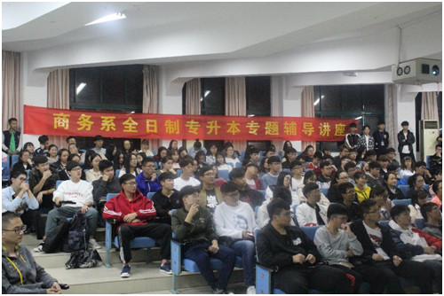 本次专题讲座,解答了大量深积在同学们心中的疑问,打消了部分同学的畏难情绪,使不少同学对专升本增添了一分自信,激发了同学内在的热情和抱负,对今后的学习方向和追求目标也有一个新的思考。(商务系编辑部)