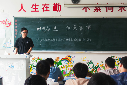 暑期反邪教社会实践队以小组分队的形式对我院各系各班的学生进行了抽样式问卷调查。活动中,同学们都十分积极配合志愿者的调查工作,还与志愿者一起讨论邪教的危害,气氛融洽。