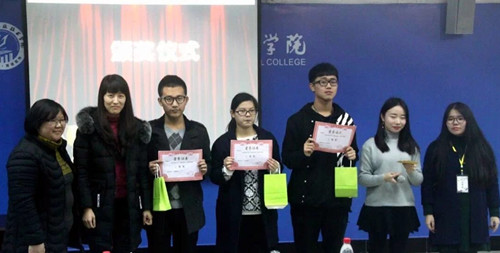 12月21日晚6:30应用语言系英语口语大赛决赛在1117教室举行。辅导员张登高、班主任王世超以及商务英语教研室主任柴畅、商务英语教研室教师贺学贵、潘冬梅、吴菲和金晶出席比赛并担任评委和嘉宾。此外,本次比赛还特邀了两位外籍教师Chirstina和Alina作为嘉宾评委来为大赛助兴。经过预赛的激烈角逐,有十名同学脱颖而出参加此次决赛。