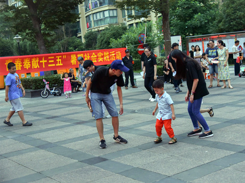实践活动主要通过与社区儿童开展手工绘画、跳兔子舞、跳格子、学习才艺等喜闻乐见的趣味活动,为社区儿童们度过一个欢乐的夜晚。通过做游戏,告诉孩子们团队的重要性,让孩子们在游戏中学会合作,奉献。同时,学生志愿者们还为居民们献上了一场精彩的文艺表演。整场演出气氛热烈,高潮迭起,掌声不断,吸引了广大居民驻足观看。