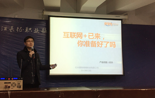 本次讲座邀请的是杭州爱财网络科技有限公司的产品总监任远先生。杭州爱财网络科技公司是一家新兴的互联网+金融企业,依托互联网+,公司成立短短一年时间,发展迅速,并获得了省市领导的高度关注。公司产品总监任远,从事互联网工作十几年,对互联网+有着较为深刻的理解和认识。