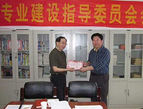 会上,系主任李庆海宣读了商务系各专业建设指导委员会组成人员调整名单,教学副院长杜宝山向校处专家颁发了聘书。