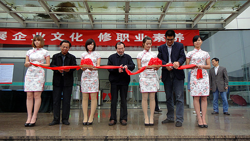 11月2日下午13:20学院在图书馆广场举办企业文化展板展览开展仪式。学院有关领导,商务系、管理系等系部领导,企业代表杭州赢动教育咨询有限公司总裁以及学生代表200多人参加了开展仪式。