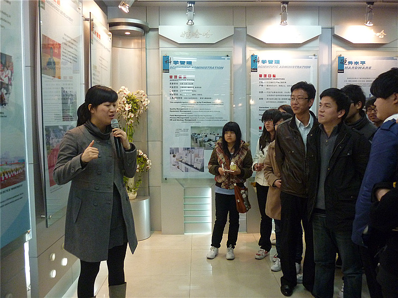 在行政办公楼,我们看了娃哈哈公司的形象展示厅,在大厅里我们看到的是娃哈哈精神“励精图治、艰苦奋斗、勇于开拓、自强不息”这不仅仅鼓舞着娃哈哈公司的全体员工,也让我们深受启迪。