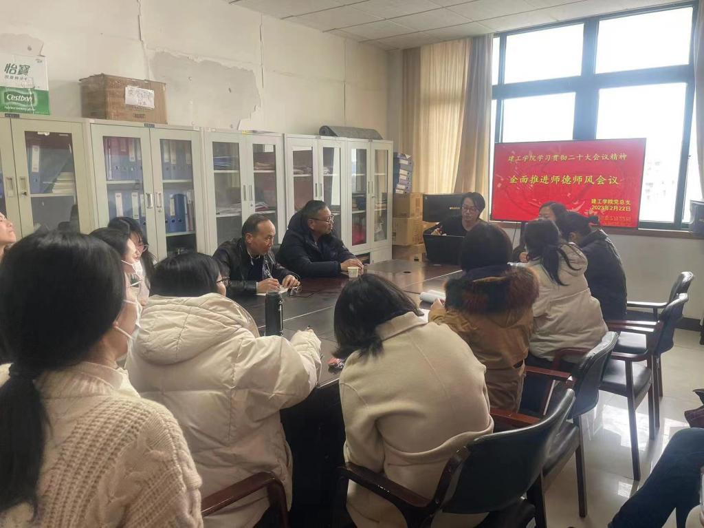 为进一步深入学习贯彻党的二十大会议精神,加强师德师风建设,提升教师思想政治素质和职业道德水平,2月22日,建筑工程学院召开“学习贯彻二十大会议精神,全面推进德师风建设”专题学习会,学院副院长杨琼、党总支副书记陈敏洁以及全体教职员工参加了会议。
