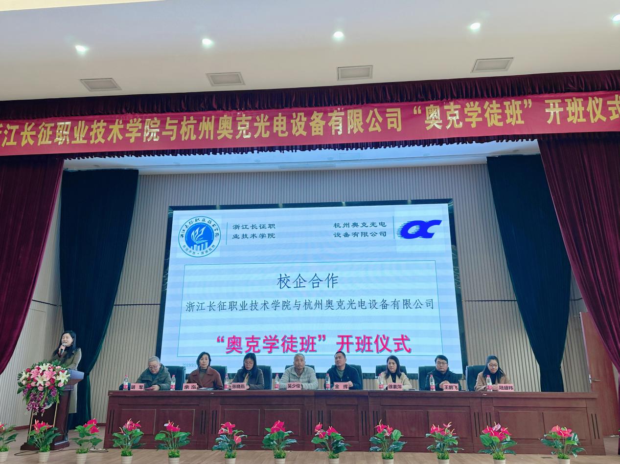 “奥克学徒班”顺利开班标志着校企合作进入了一个崭新的阶段,通过校企双方优势互补,资源共享,为杭州奥克光电设备有限公司培养更多更高素质技术技能型人才,未来,学校将认真贯彻好新职教法精神,持续推进校企融合深度,创新德技并修、工学结合的育人模式,为学校“双高”建设添砖加瓦。。