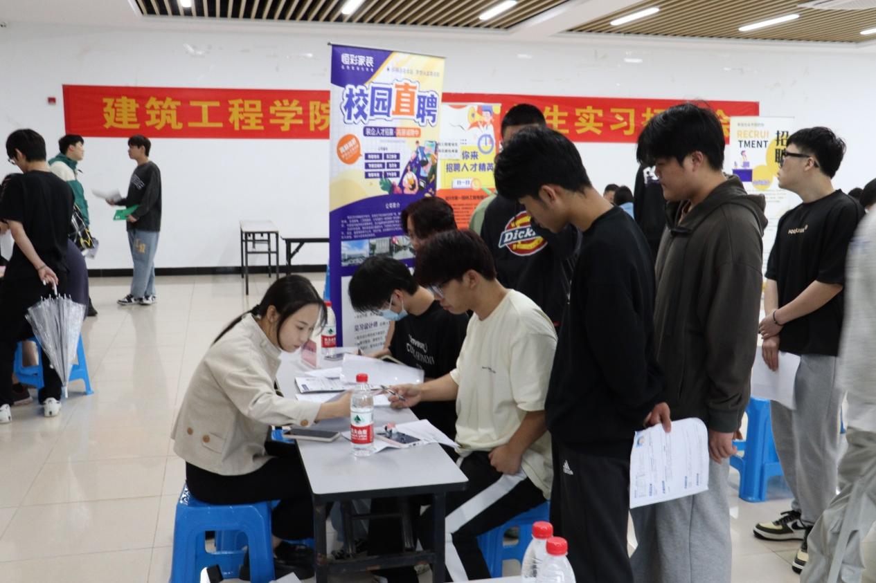 招聘会现场氛围火爆,同学们积极参与现场交流,结合自身优势和兴趣选择企业投递简历,了解企业的发展概况、企业文化、工作岗位以及薪酬福利待遇等情况,建筑工程学院学生工作办公室主任丁芳及各班辅导员也到场开展职业咨询,解答就业疑惑,建议毕业生按照自身需求投递简历,高效、科学择业,不少同学与用人单位达成了初步实习意向。