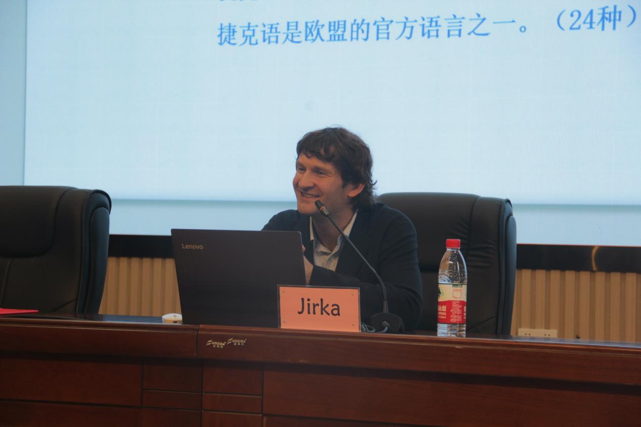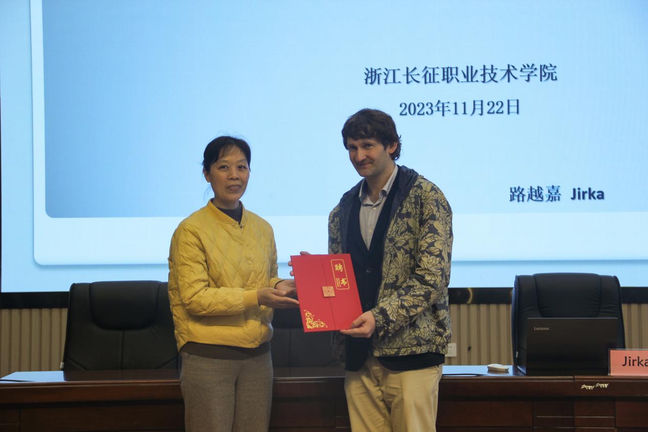 11月22日下午,捷克籍Jirka(中文名:路越嘉)博士受聘学校客座教授仪式在学校第二报告厅举行。教务处处长朱月双,外事处处长李春辉及近200名师生代表参加仪式。