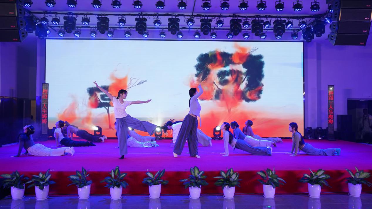 在指导老师的带领下,我校派出的13名学校艺术团舞蹈队的学生骨干,精心筹备、辛勤排练,在社区舞台上展演了自编舞蹈作品《人生海海》。舞者以灵动的舞姿、饱满的热情和精湛的技艺,彰显青春的活力。他们的舞蹈时而充满力量,时而尽显柔美。华丽的服装与精彩的舞蹈动作相得益彰,配合着感染力的音乐,将现场气氛推向高潮。